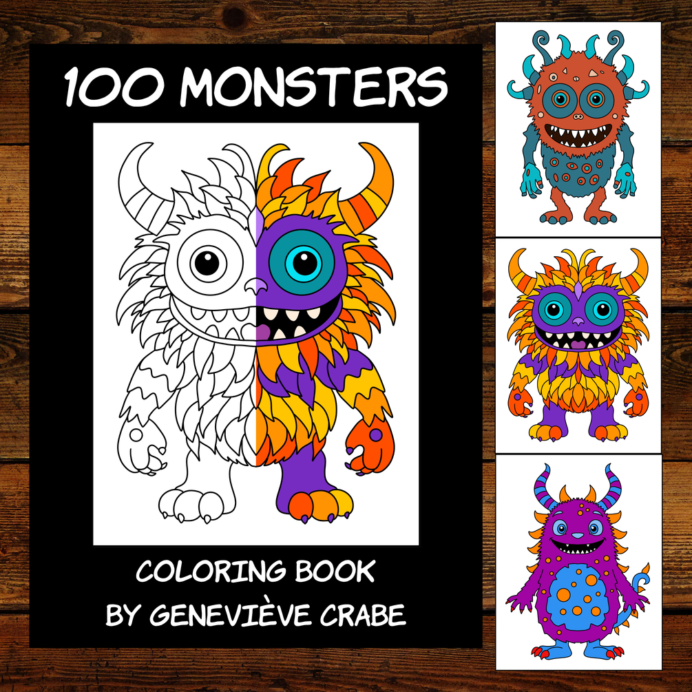 Coloring is a relaxing activity for everyone. This book contains 100 drawings of cute friendly monsters for coloring.
